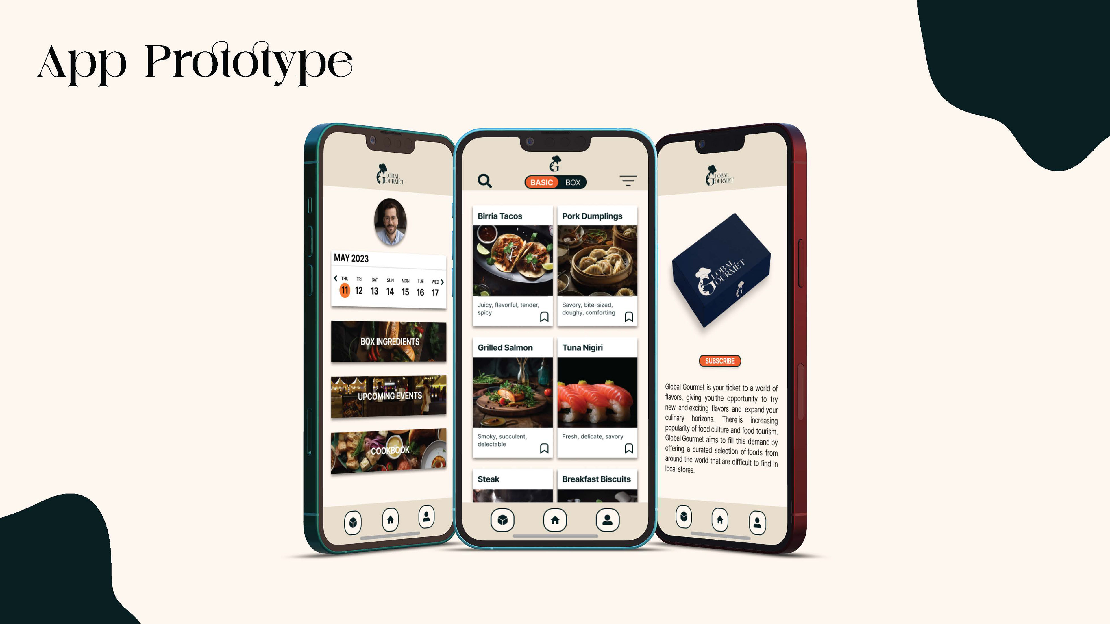 During the Hybrid Visual Identity: Design and Application course, I collaborated with a team to extend the brand guidelines of Global Gourmet, a cooking subscription service, to various media platforms. My specific contribution involved developing the Global Gourmet app using Figma.